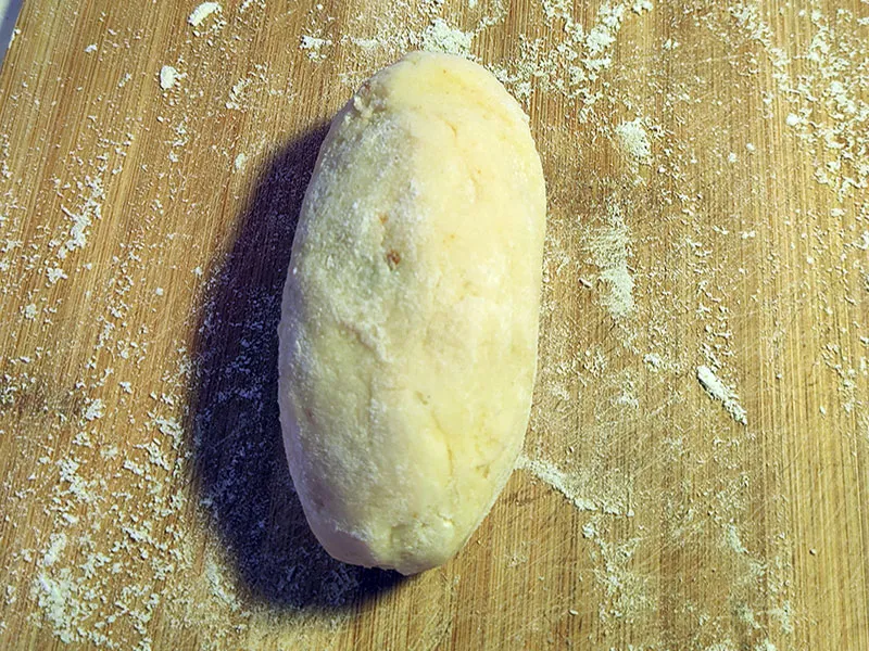 - First knead the cool and rested potato dough for a few seconds with floured hands. If you are a beginner, best divide the potato dough into 6 to 8 portions.