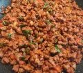 - Then heat oil in a frying pan, and in portions brown the minced meat from all sides. Season slightly with salt and pepper. Remove the meat from the pan and set aside.