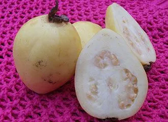 With varying colors from yellow to pink to red to green Guayabas are the small, round or pear-like shaped fruits of tropical shrubs or small trees belonging to the Myrtle family. The flesh may differ from white to yellow to orange to red and contains a large number of small, edible seeds. Guavas have a very aromatic, distinctive scent. As the fruit comes in so many different appearances, it also varies widely in taste: Guavas can be sweet or sour, taste like pear, strawberry, peach, quince, fig, lemon rind or a mixture of the one or other – so quite exotic.
